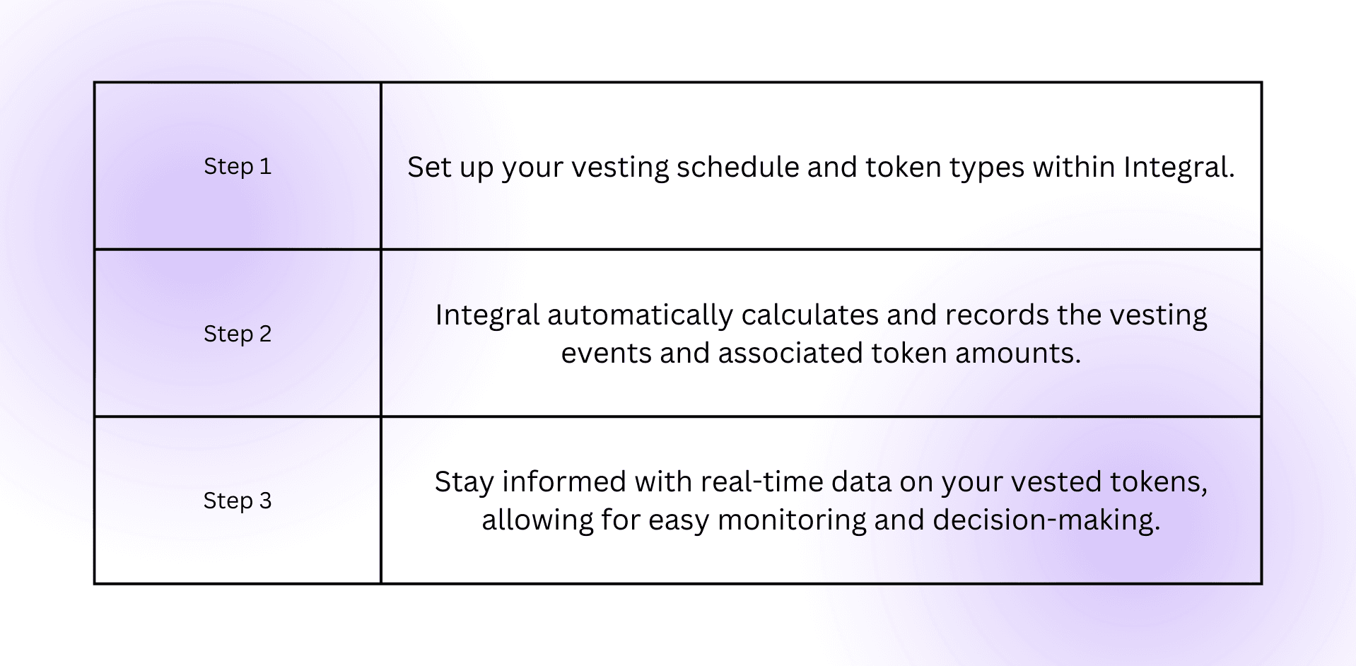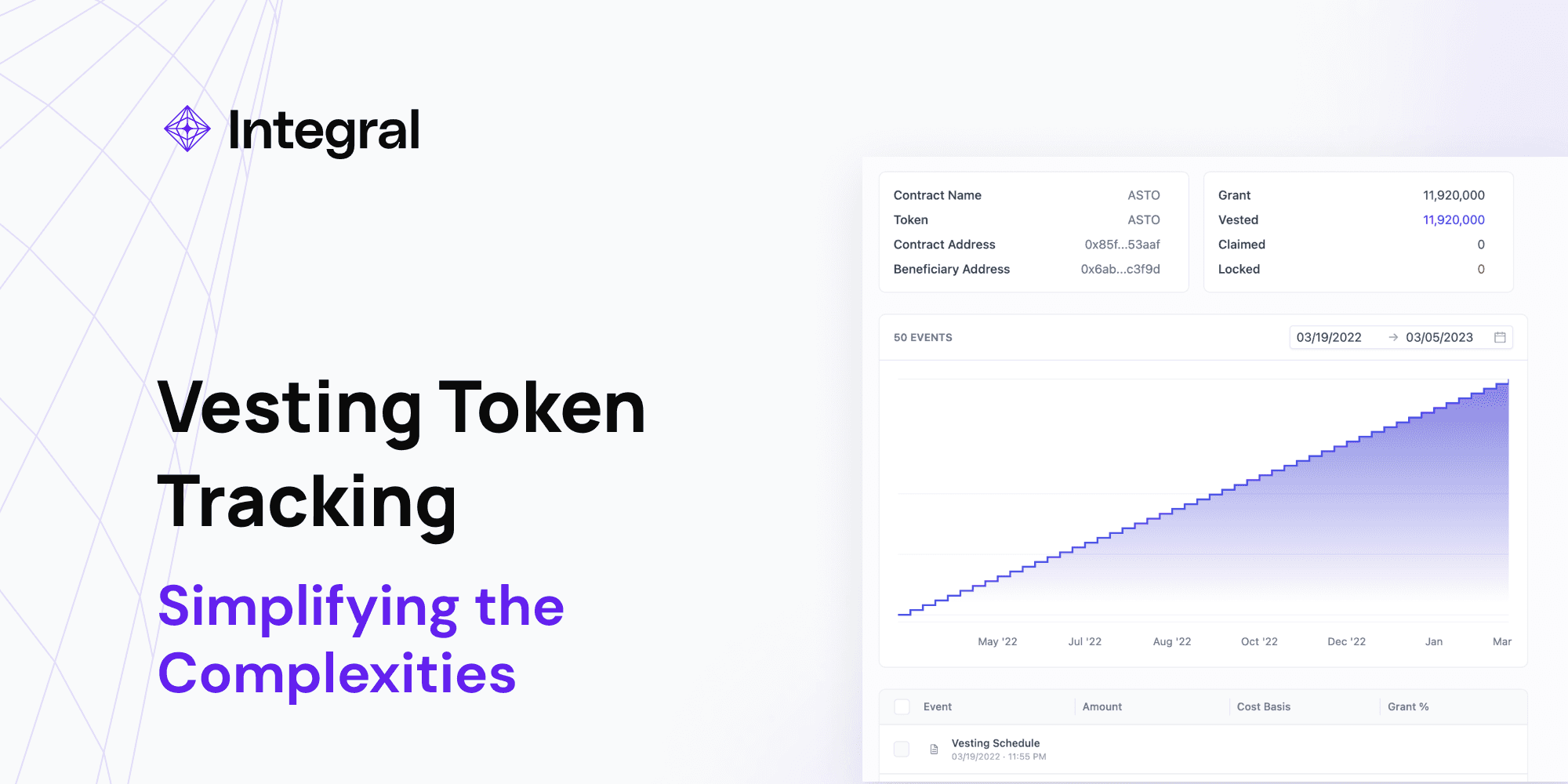 Automated Vesting Calculations: Integral navigates the complexities of vesting calculations, facilitating the timely monitoring of vested token distribution.