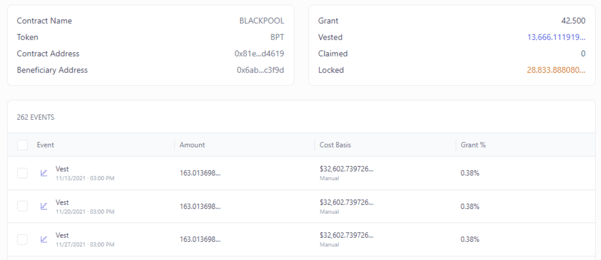 Integral's Vesting Token Tracking system is designed to provide a comprehensive suite of tools to accurately track and manage your vested tokens. Here are some core functionalities:
